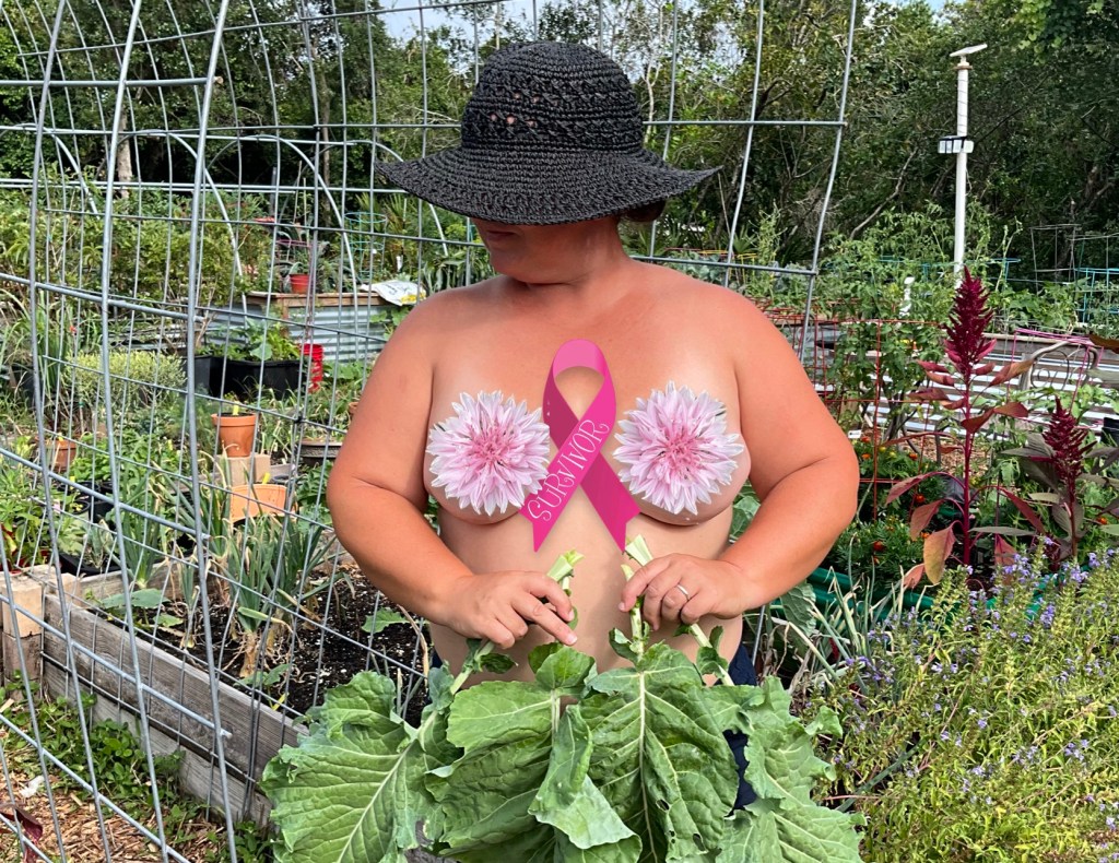 I am a breast cancer survivor and an avid gardener so I felt that it was appropriate to take a picture to honor those who love to garden in the buff (not me because mosquitos love me), to honor those who are battling cancer, to honor those who lost their battle, and to honor those of us that are survivors.