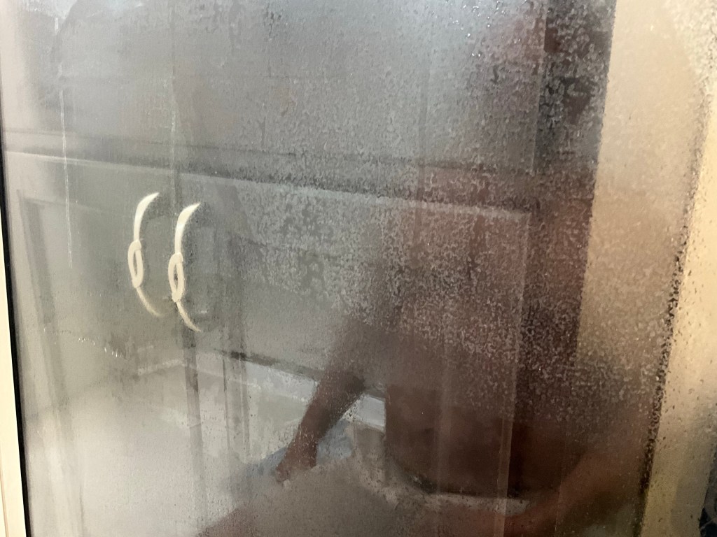 Apparently, we have hard water, which is fine, though if you do not clean your glass shower doors for five years, they will look like frosted glass only more gross?