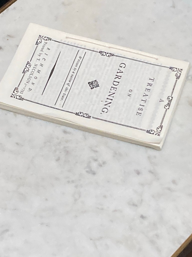 As you can tell, Jefferson had a fascination with gadgets, including clocks, and even a device to measure the distance traveled. I also found evidence of his passion for the gardens and gardening right on his nightstand!
