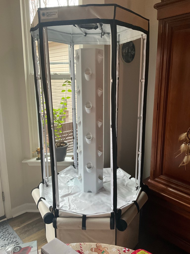 So, now, I got an Aerospring hydroponic garden tower for Christmas. My husband had been doing research and found me this one. It has plenty of space for indoor growing.