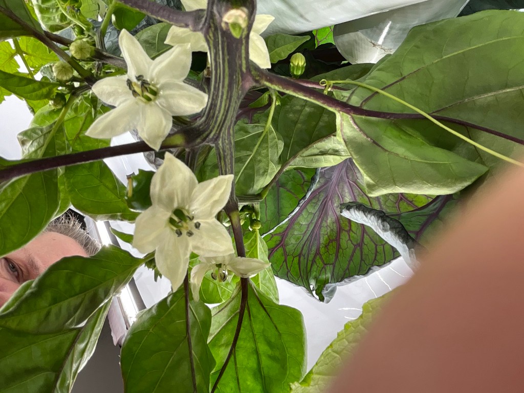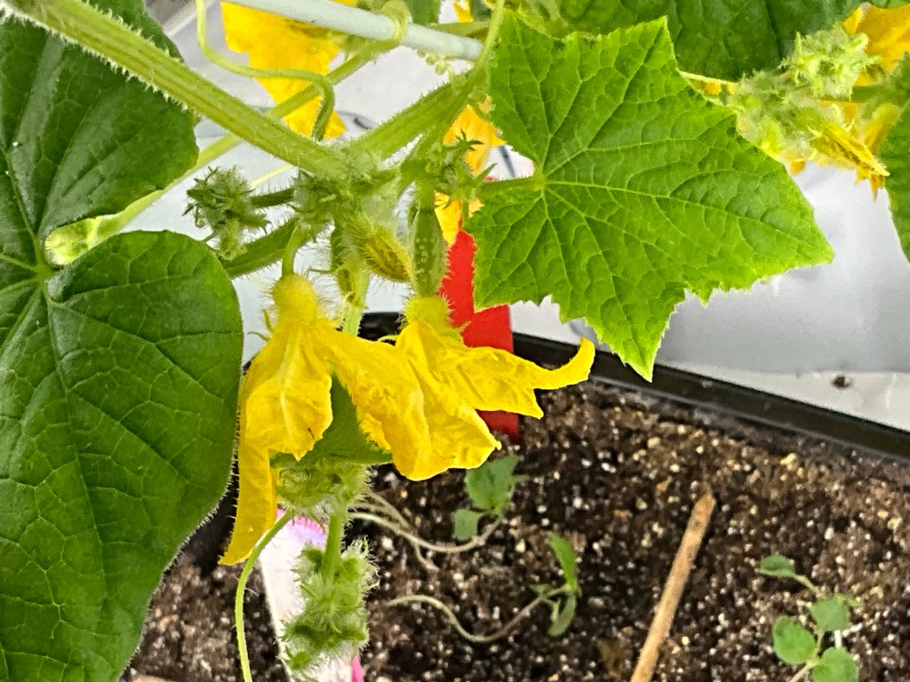 Well, my Ajvarski bell peppers are in full bloom, my Baxter’s early bush tomato is flowering, and my cucumber is producing both male and female flowers!